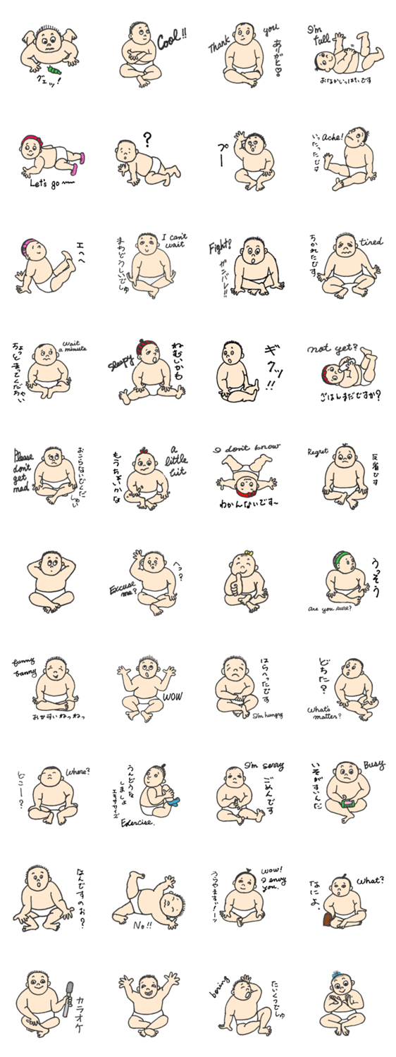 Babies Talk Kay Nitta コメントをどうぞ 赤ちゃん軍団ですみんな1歳未満の赤ちゃんで~す!! このスタンプどう思う?!↓クリックで投票♪好き (0)かわいい (0)かっこいい (0)おもしろい (0)使いやすそう (0)欲しい (0)萌え (0)ほっこりする (0)おしゃれ (0)ゆるい (0)こわい (0)ウザい (0)キモい (0)ムカつく (0)持ってる (0)癒される (0)セクシー (0)個性的 (0)私は買わない (0)誰かプレゼントして! (0) 購入・プレゼントする Facebookでシェア Twitterでシェア