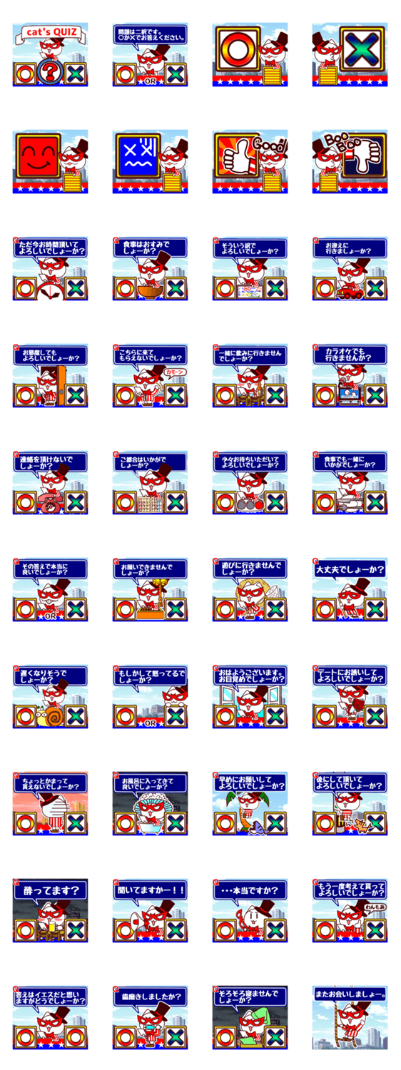 cat's ○×クイズ くまx2 コメントをどうぞ 今回のcat'sシリーズはクイズ番組。シンプルな○×問題なので気軽に使えちゃう。いつもは言いづらいことや切り出しにくいこともクイズなら大丈夫!? このスタンプどう思う?!↓クリックで投票♪好き (0)かわいい (0)かっこいい (0)おもしろい (0)使いやすそう (0)欲しい (0)萌え (0)ほっこりする (0)おしゃれ (0)ゆるい (0)こわい (0)ウザい (0)キモい (0)ムカつく (0)持ってる (0)癒される (0)セクシー (0)個性的 (0)私は買わない (0)誰かプレゼントして! (0) 購入・プレゼントする Facebookでシェア Twitterでシェア