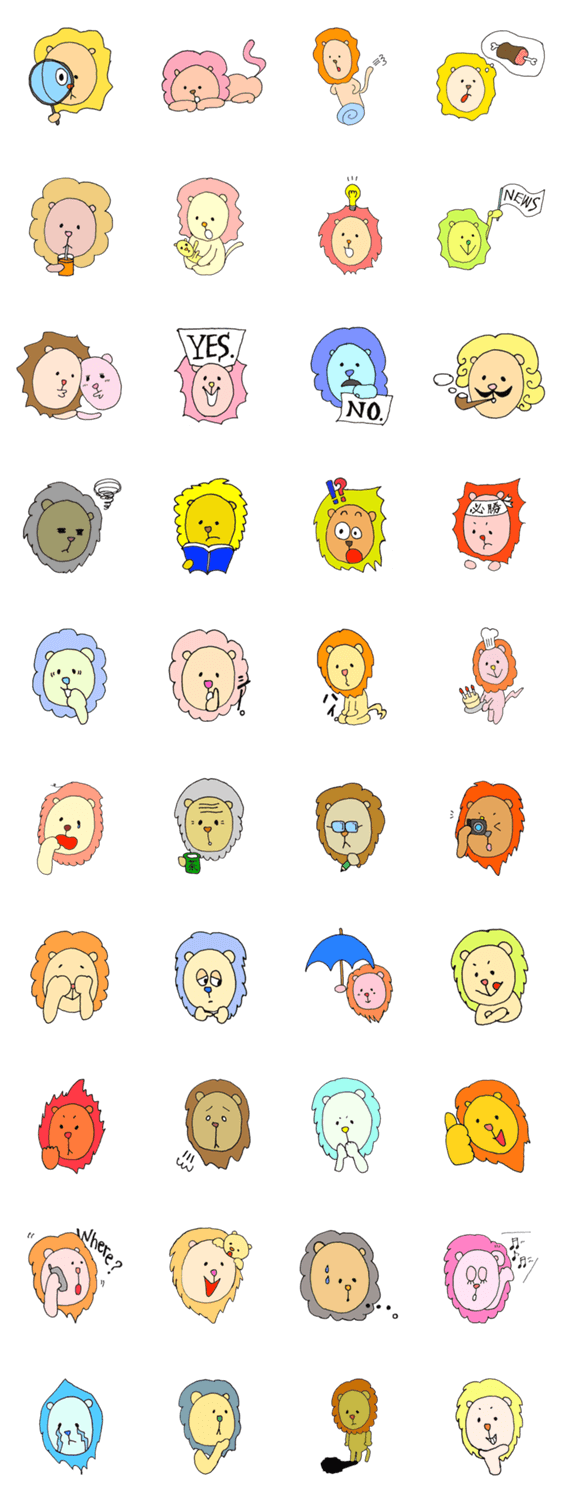 COLORFUL LIONS ミセス・りりー コメントをどうぞ 場面や表情によって顔色とタテガミの色が変わる手書きライオンのスタンプ このスタンプどう思う?!↓クリックで投票♪好き (0)かわいい (0)かっこいい (0)おもしろい (0)使いやすそう (0)欲しい (0)萌え (0)ほっこりする (0)おしゃれ (0)ゆるい (0)こわい (0)ウザい (0)キモい (0)ムカつく (0)持ってる (0)癒される (0)セクシー (0)個性的 (0)私は買わない (0)誰かプレゼントして! (0) 購入・プレゼントする Facebookでシェア Twitterでシェア