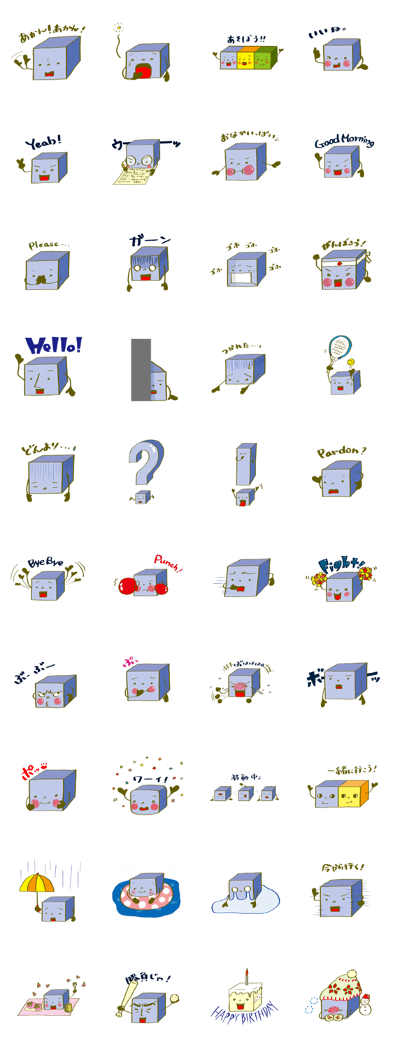 CUBEくん uchimomo コメントをどうぞ いつかは球体になることを夢見、転んでも起き上がるCUBEくん。ただの立方体だけど泣いたり笑ったり忙しい毎日です。 このスタンプどう思う?!↓クリックで投票♪好き (0)かわいい (0)かっこいい (0)おもしろい (0)使いやすそう (0)欲しい (0)萌え (0)ほっこりする (0)おしゃれ (0)ゆるい (0)こわい (0)ウザい (0)キモい (0)ムカつく (0)持ってる (0)癒される (0)セクシー (0)個性的 (0)私は買わない (0)誰かプレゼントして! (0) 購入・プレゼントする Facebookでシェア Twitterでシェア