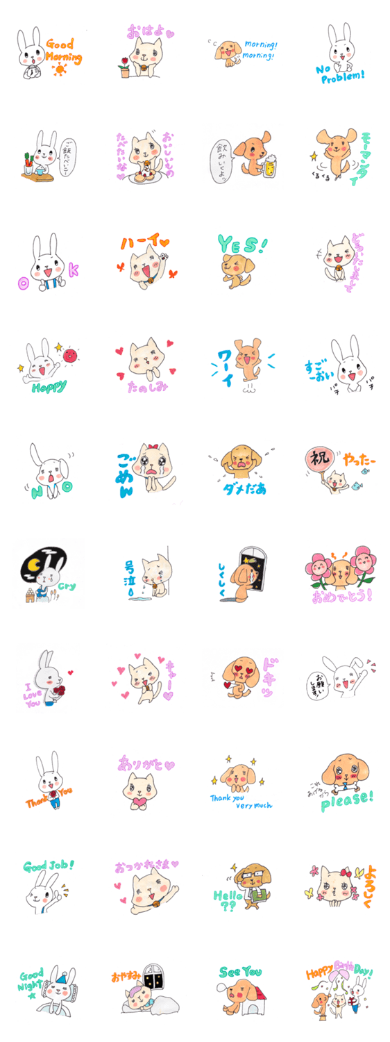CUTE!かーこのほんとに使える動物スタンプ かーこ コメントをどうぞ よく使う表現を3パターンずつ、人気の動物、うさぎ、ねこ、犬、で描いた可愛らしい手描きのスタンプです。 このスタンプどう思う?!↓クリックで投票♪好き (0)かわいい (0)かっこいい (0)おもしろい (0)使いやすそう (0)欲しい (0)萌え (0)ほっこりする (0)おしゃれ (0)ゆるい (0)こわい (0)ウザい (0)キモい (0)ムカつく (0)持ってる (0)癒される (0)セクシー (0)個性的 (0)私は買わない (0)誰かプレゼントして! (0) 購入・プレゼントする Facebookでシェア Twitterでシェア