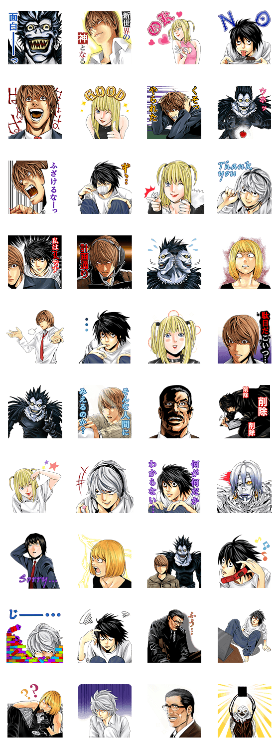 DEATH NOTE 集英社 コメントをどうぞ 死神のノートを巡る究極の頭脳戦を描いた「DEATH NOTE」がLINEスタンプに登場!あの名セリフはもちろん、個性的なキャラクターたちが勢揃い。 このスタンプどう思う?!↓クリックで投票♪好き (0)かわいい (0)かっこいい (0)おもしろい (0)使いやすそう (0)欲しい (0)萌え (0)ほっこりする (0)おしゃれ (0)ゆるい (0)こわい (0)ウザい (0)キモい (0)ムカつく (0)持ってる (0)癒される (0)セクシー (0)個性的 (0)私は買わない (0)誰かプレゼントして! (0) 購入・プレゼントする Facebookでシェア Twitterでシェア