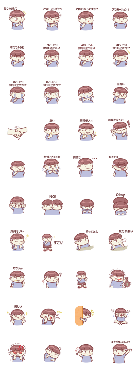 Discount Boy "Bao-Wan"(Japan) Mr.Chanpavean Haputhar コメントをどうぞ If you have some bargaining problem.Let's Discount Boy "Bao-Wan" to solve problems for you! このスタンプどう思う?!↓クリックで投票♪好き (0)かわいい (0)かっこいい (0)おもしろい (0)使いやすそう (0)欲しい (0)萌え (0)ほっこりする (0)おしゃれ (0)ゆるい (0)こわい (0)ウザい (0)キモい (0)ムカつく (0)持ってる (0)癒される (0)セクシー (0)個性的 (0)私は買わない (0)誰かプレゼントして! (0) 購入・プレゼントする Facebookでシェア Twitterでシェア