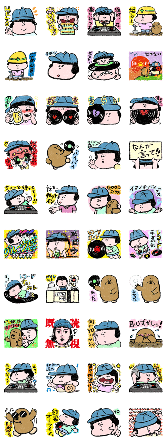 DJ子ちゃんとレコ堀りもぐら君 みのもまりか コメントをどうぞ レコードのことが大好きなDJ子ちゃんと、すてきなレコードを掘ってきてくれるレコ堀りもぐら君の愉快で実用性のあるたのしいスタンプ。 このスタンプどう思う?!↓クリックで投票♪好き (0)かわいい (0)かっこいい (0)おもしろい (0)使いやすそう (0)欲しい (0)萌え (0)ほっこりする (0)おしゃれ (0)ゆるい (0)こわい (0)ウザい (0)キモい (0)ムカつく (0)持ってる (0)癒される (0)セクシー (0)個性的 (0)私は買わない (0)誰かプレゼントして! (0) 購入・プレゼントする Facebookでシェア Twitterでシェア