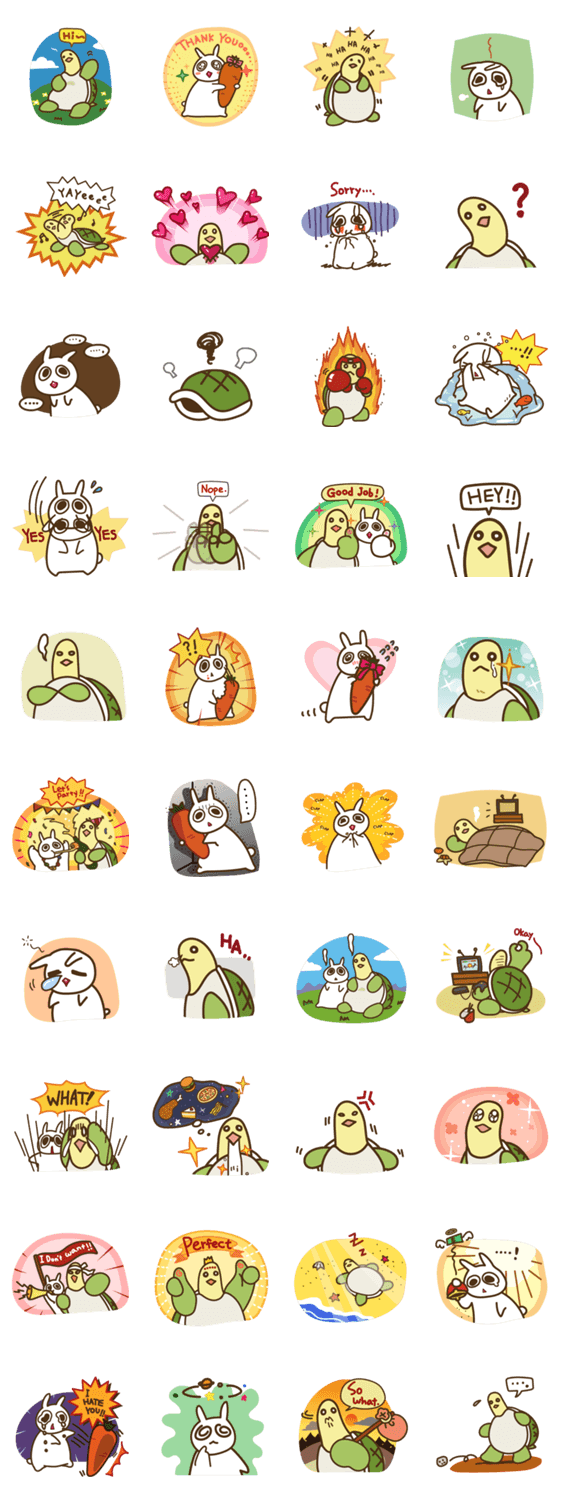 Dori & Tozzi yelyel コメントをどうぞ Forget "hare and tortoise". Dori is pretty moody, but cute "quick" turtle.Tozzi is "slow" rabit that naive crybaby. They are best friends in the world! このスタンプどう思う?!↓クリックで投票♪好き (0)かわいい (0)かっこいい (0)おもしろい (0)使いやすそう (0)欲しい (0)萌え (0)ほっこりする (0)おしゃれ (0)ゆるい (0)こわい (0)ウザい (0)キモい (0)ムカつく (0)持ってる (0)癒される (0)セクシー (0)個性的 (0)私は買わない (0)誰かプレゼントして! (0) 購入・プレゼントする Facebookでシェア Twitterでシェア