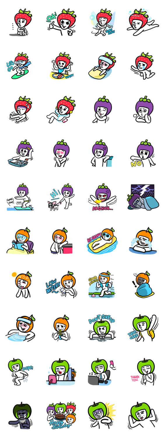 FAROX and friends : happy fruity kids. FAROX コメントをどうぞ the 1st packs of happy fruity kids they're all friendly,funny and naughty let make your chat more fun with these kids. このスタンプどう思う?!↓クリックで投票♪好き (0)かわいい (0)かっこいい (0)おもしろい (0)使いやすそう (0)欲しい (0)萌え (0)ほっこりする (0)おしゃれ (0)ゆるい (0)こわい (0)ウザい (0)キモい (0)ムカつく (0)持ってる (0)癒される (0)セクシー (0)個性的 (0)私は買わない (0)誰かプレゼントして! (0) 購入・プレゼントする Facebookでシェア Twitterでシェア
