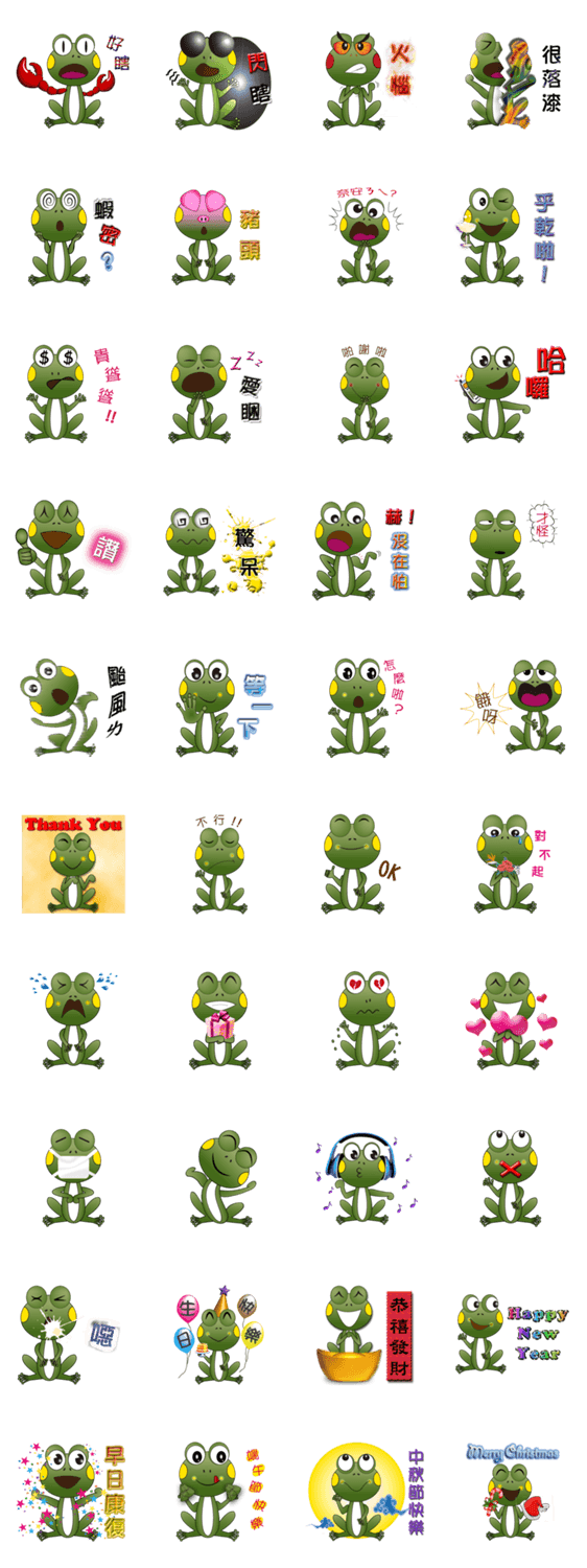 Ga-Ga the Frog Sheila Wang コメントをどうぞ Ga-Ga speaks Chinese, Taiwanese and English. He uses slangs to express feeling and emotion. このスタンプどう思う?!↓クリックで投票♪好き (0)かわいい (0)かっこいい (0)おもしろい (0)使いやすそう (0)欲しい (0)萌え (0)ほっこりする (0)おしゃれ (0)ゆるい (0)こわい (0)ウザい (0)キモい (0)ムカつく (0)持ってる (0)癒される (0)セクシー (0)個性的 (0)私は買わない (0)誰かプレゼントして! (0) 購入・プレゼントする Facebookでシェア Twitterでシェア