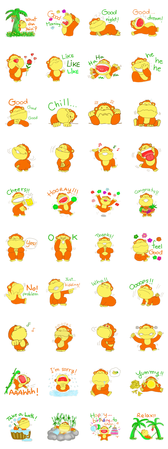 Good Gorilla S. Pluemchit コメントをどうぞ Good is a lovely monkey gorilla. His favorite fruit is banana. Hope you enjoys Good's stickers. このスタンプどう思う?!↓クリックで投票♪好き (0)かわいい (0)かっこいい (0)おもしろい (0)使いやすそう (0)欲しい (0)萌え (0)ほっこりする (0)おしゃれ (0)ゆるい (0)こわい (0)ウザい (0)キモい (0)ムカつく (0)持ってる (0)癒される (0)セクシー (0)個性的 (0)私は買わない (0)誰かプレゼントして! (0) 購入・プレゼントする Facebookでシェア Twitterでシェア