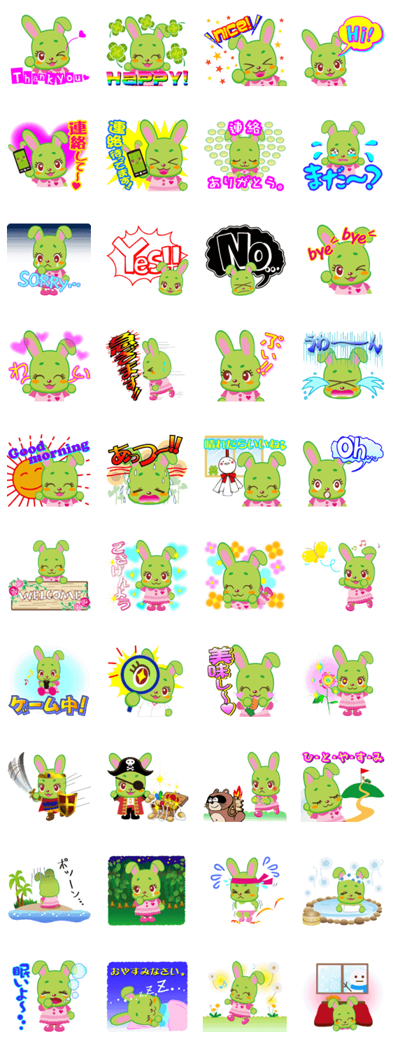 Green Rabbit ミウちゃん キンプロ オフィス コメントをどうぞ キンプロオフィスから第3弾「優しく愛らしいミウちゃんの冒険を楽しめるスタンプ♪」 このスタンプどう思う?!↓クリックで投票♪好き (0)かわいい (0)かっこいい (0)おもしろい (0)使いやすそう (0)欲しい (0)萌え (0)ほっこりする (0)おしゃれ (0)ゆるい (0)こわい (0)ウザい (0)キモい (0)ムカつく (0)持ってる (0)癒される (0)セクシー (0)個性的 (0)私は買わない (0)誰かプレゼントして! (0) 購入・プレゼントする Facebookでシェア Twitterでシェア