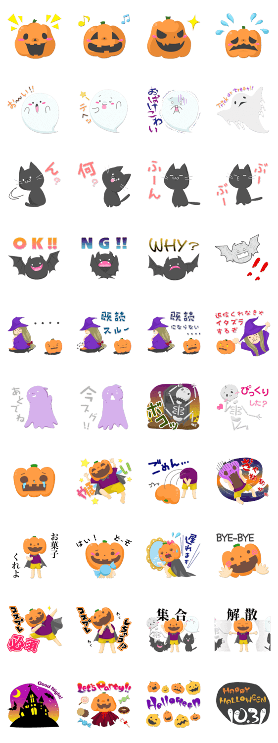 HALLOWEEN Party! Canpas Vista コメントをどうぞ ハロウィンパーティ!かぼちゃのジャック・オー・ランタン、黒猫、コウモリ、魔女、オバケ、骸骨など可愛いハロウィンキャラクターのスタンプが会話を盛り上げてくれるよ! このスタンプどう思う?!↓クリックで投票♪好き (0)かわいい (0)かっこいい (0)おもしろい (0)使いやすそう (0)欲しい (0)萌え (0)ほっこりする (0)おしゃれ (0)ゆるい (0)こわい (0)ウザい (0)キモい (0)ムカつく (0)持ってる (0)癒される (0)セクシー (0)個性的 (0)私は買わない (0)誰かプレゼントして! (0) 購入・プレゼントする Facebookでシェア Twitterでシェア