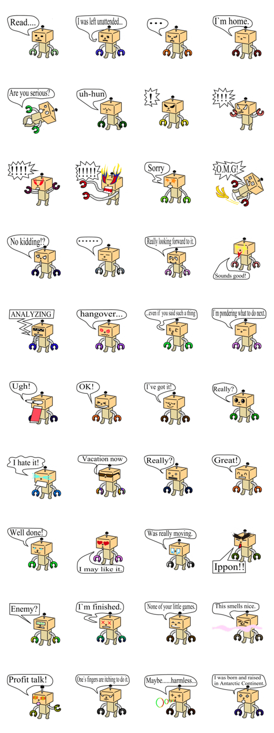 hammerhead_robot jhonjii コメントをどうぞ It is the robot which a hammer sticks in on a head.The color of the manipulator changes by a feeling. このスタンプどう思う?!↓クリックで投票♪好き (0)かわいい (0)かっこいい (0)おもしろい (0)使いやすそう (0)欲しい (0)萌え (0)ほっこりする (0)おしゃれ (0)ゆるい (0)こわい (0)ウザい (0)キモい (0)ムカつく (0)持ってる (0)癒される (0)セクシー (0)個性的 (0)私は買わない (0)誰かプレゼントして! (0) 購入・プレゼントする Facebookでシェア Twitterでシェア