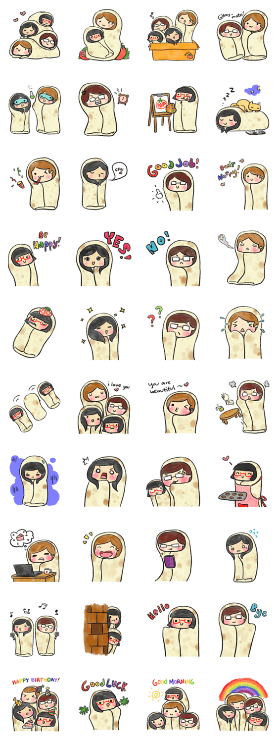 Happy Burrito Friends april.m コメントをどうぞ Everyday is a happy day with the happy burrito friends! このスタンプどう思う?!↓クリックで投票♪好き (0)かわいい (0)かっこいい (0)おもしろい (0)使いやすそう (0)欲しい (0)萌え (0)ほっこりする (0)おしゃれ (0)ゆるい (0)こわい (0)ウザい (0)キモい (0)ムカつく (0)持ってる (0)癒される (0)セクシー (0)個性的 (0)私は買わない (0)誰かプレゼントして! (0) 購入・プレゼントする Facebookでシェア Twitterでシェア
