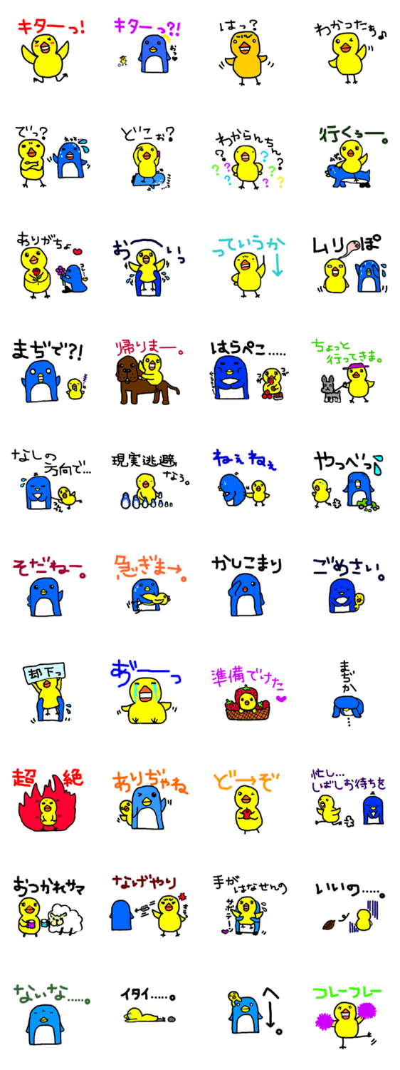 hiyochan penchan's world Hiyo コメントをどうぞ ひよちゃんとぺんちゃんはとても仲良し!でもひよちゃんの自由奔放な性格にぺんちゃんはふりまわされて大変!でも楽しんでいるようにも見えるのよね…(笑) このスタンプどう思う?!↓クリックで投票♪好き (0)かわいい (0)かっこいい (0)おもしろい (0)使いやすそう (0)欲しい (0)萌え (0)ほっこりする (0)おしゃれ (0)ゆるい (0)こわい (0)ウザい (0)キモい (0)ムカつく (0)持ってる (0)癒される (0)セクシー (0)個性的 (0)私は買わない (0)誰かプレゼントして! (0) 購入・プレゼントする Facebookでシェア Twitterでシェア