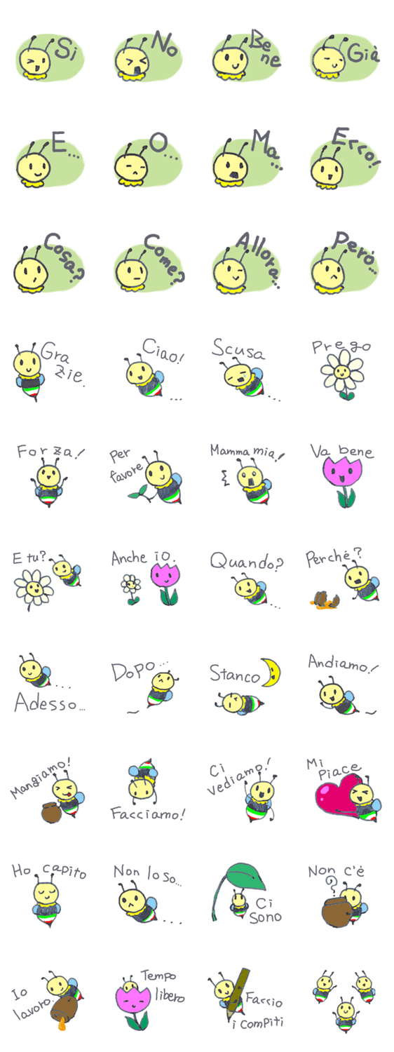 Italian Bee saya_m コメントをどうぞ イタリア語でスタンプしてみたい!そんな時にはこの蜂におまかせ。話の繋ぎや相槌にご利用ください。 このスタンプどう思う?!↓クリックで投票♪好き (0)かわいい (0)かっこいい (0)おもしろい (0)使いやすそう (0)欲しい (0)萌え (0)ほっこりする (0)おしゃれ (0)ゆるい (0)こわい (0)ウザい (0)キモい (0)ムカつく (0)持ってる (0)癒される (0)セクシー (0)個性的 (0)私は買わない (0)誰かプレゼントして! (0) 購入・プレゼントする Facebookでシェア Twitterでシェア