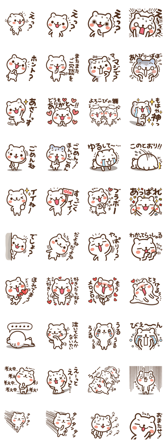 JOJOKUMA~徐々にテンション上げるクマ みーすけ コメントをどうぞ 徐々にテンションを上げながら、思いを伝えるクマのスタンプ。1個だけで使っても、4個連続で畳み掛けるように使ってもOK!使い方はあなた次第♪ このスタンプどう思う?!↓クリックで投票♪好き (0)かわいい (0)かっこいい (0)おもしろい (0)使いやすそう (0)欲しい (0)萌え (0)ほっこりする (0)おしゃれ (0)ゆるい (0)こわい (0)ウザい (0)キモい (0)ムカつく (0)持ってる (0)癒される (0)セクシー (0)個性的 (0)私は買わない (0)誰かプレゼントして! (0) 購入・プレゼントする Facebookでシェア Twitterでシェア