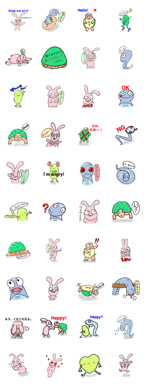 Kelog君と愉快な仲間たち kelog コメントをどうぞ kelog君と愉快な仲間たちのスタンプです。仲間はウサギ、ヘビそしてカメです。どうぞこのスタンプで楽しんでください。 このスタンプどう思う?!↓クリックで投票♪好き (0)かわいい (0)かっこいい (0)おもしろい (0)使いやすそう (0)欲しい (0)萌え (0)ほっこりする (0)おしゃれ (0)ゆるい (0)こわい (0)ウザい (0)キモい (0)ムカつく (0)持ってる (0)癒される (0)セクシー (0)個性的 (0)私は買わない (0)誰かプレゼントして! (0) 購入・プレゼントする Facebookでシェア Twitterでシェア