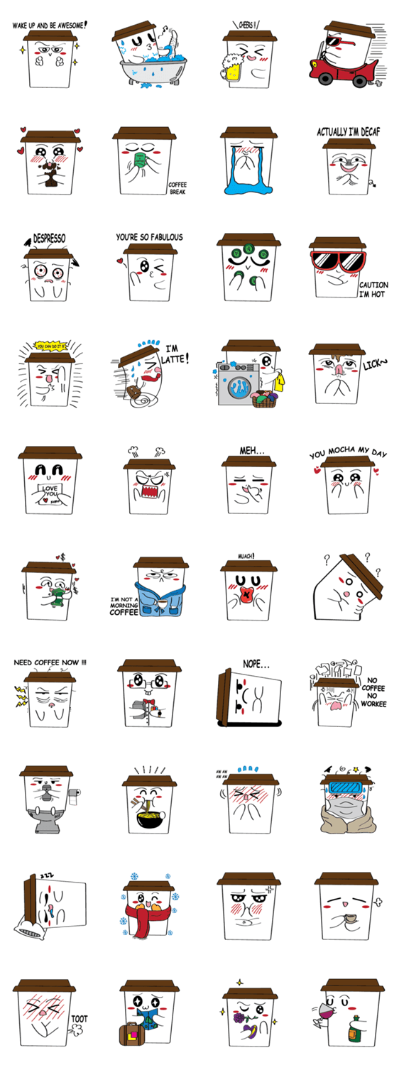 Koffie Christine H コメントをどうぞ Koffie is an ordinary coffee cup with extraordinary life! He is bubbly, environmental friendly and passionate. As you can see he is a coffee addict, are you? このスタンプどう思う?!↓クリックで投票♪好き (0)かわいい (0)かっこいい (0)おもしろい (0)使いやすそう (0)欲しい (0)萌え (0)ほっこりする (0)おしゃれ (0)ゆるい (0)こわい (0)ウザい (0)キモい (0)ムカつく (0)持ってる (0)癒される (0)セクシー (0)個性的 (0)私は買わない (0)誰かプレゼントして! (0) 購入・プレゼントする Facebookでシェア Twitterでシェア