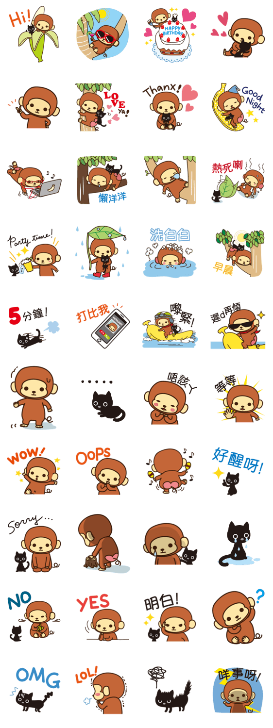Lazy Monchey (Cantonese) セリーニャ カワティエ コメントをどうぞ Meet Monchey in Cantonese! He loves eating bananas and sleeping. His sweet kitten Lynia follows Monchy everywhere. Welcome to the jungle! このスタンプどう思う?!↓クリックで投票♪好き (0)かわいい (0)かっこいい (0)おもしろい (0)使いやすそう (0)欲しい (0)萌え (0)ほっこりする (0)おしゃれ (0)ゆるい (0)こわい (0)ウザい (0)キモい (0)ムカつく (0)持ってる (0)癒される (0)セクシー (0)個性的 (0)私は買わない (0)誰かプレゼントして! (0) 購入・プレゼントする Facebookでシェア Twitterでシェア