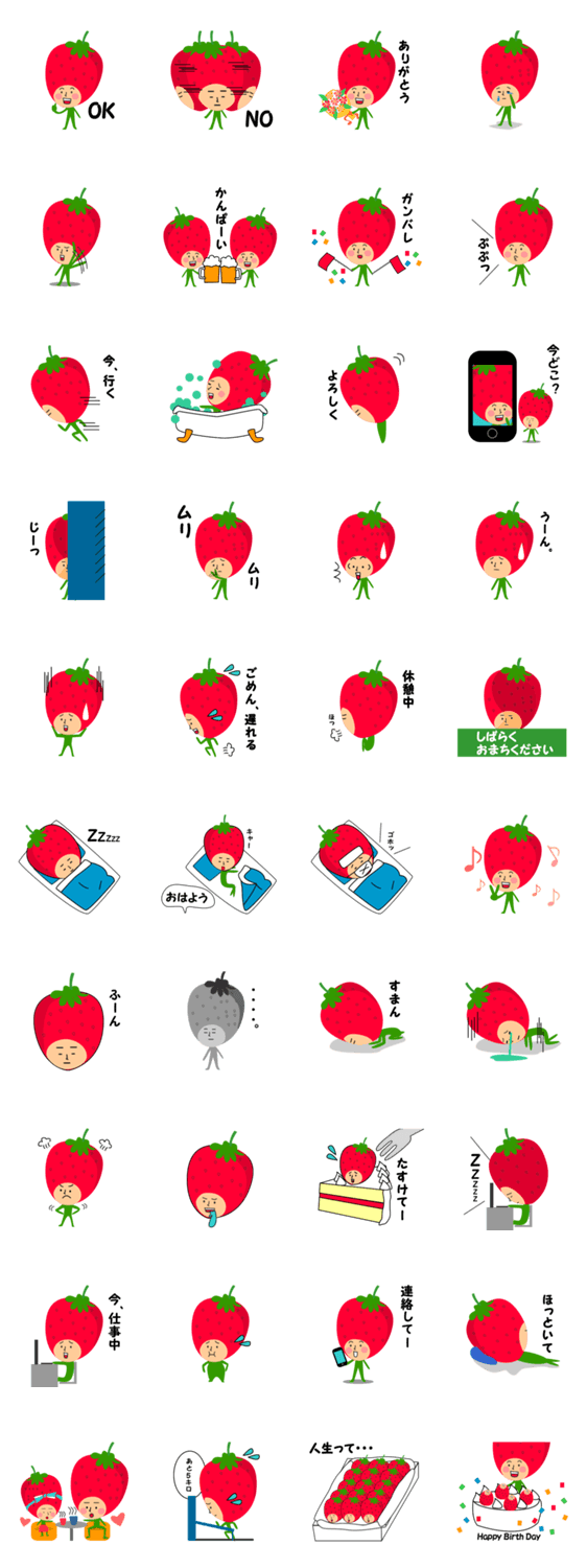 Let's talk with Tadashi 14 colors コメントをどうぞ The strawberry boy is called Tadashi. He is going to help your conversation. このスタンプどう思う?!↓クリックで投票♪好き (0)かわいい (0)かっこいい (0)おもしろい (0)使いやすそう (0)欲しい (0)萌え (0)ほっこりする (0)おしゃれ (0)ゆるい (0)こわい (0)ウザい (0)キモい (0)ムカつく (0)持ってる (0)癒される (0)セクシー (0)個性的 (0)私は買わない (0)誰かプレゼントして! (0) 購入・プレゼントする Facebookでシェア Twitterでシェア