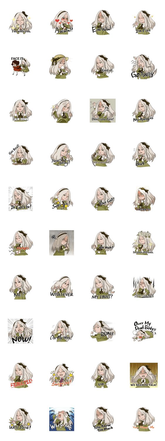 Little Wolflady Charlotte Antromeicy コメントをどうぞ Charlotte Randi has ivory white long hair. She still doesn't have much patience today. このスタンプどう思う?!↓クリックで投票♪好き (0)かわいい (0)かっこいい (0)おもしろい (0)使いやすそう (0)欲しい (0)萌え (0)ほっこりする (0)おしゃれ (0)ゆるい (0)こわい (0)ウザい (0)キモい (0)ムカつく (0)持ってる (0)癒される (0)セクシー (0)個性的 (0)私は買わない (0)誰かプレゼントして! (0) 購入・プレゼントする Facebookでシェア Twitterでシェア
