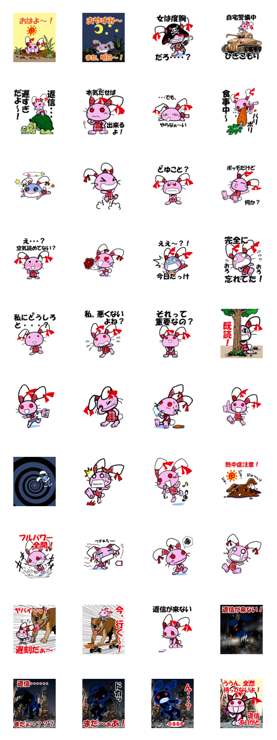 LOVE RABBIT(ラブ・ラビ) sugino giga コメントをどうぞ ギガの第四弾スタンプ、あのラブ・ラビがスタンプになって登場だよ~。今回はあの大怪獣MADAGOに変わって、兎怪獣が大暴れ、返信しない人に送ってあげてネ。 このスタンプどう思う?!↓クリックで投票♪好き (0)かわいい (0)かっこいい (0)おもしろい (0)使いやすそう (0)欲しい (0)萌え (0)ほっこりする (0)おしゃれ (0)ゆるい (0)こわい (0)ウザい (0)キモい (0)ムカつく (0)持ってる (0)癒される (0)セクシー (0)個性的 (0)私は買わない (0)誰かプレゼントして! (0) 購入・プレゼントする Facebookでシェア Twitterでシェア