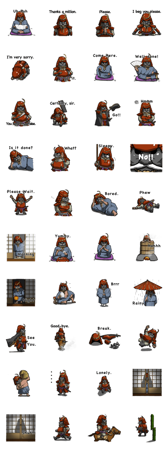 Mask Samurai ヒロヨン コメントをどうぞ This Stickers are Samurai's many actions.He has Japanese Bushido spirit and humor. このスタンプどう思う?!↓クリックで投票♪好き (0)かわいい (0)かっこいい (0)おもしろい (0)使いやすそう (0)欲しい (0)萌え (0)ほっこりする (0)おしゃれ (0)ゆるい (0)こわい (0)ウザい (0)キモい (0)ムカつく (0)持ってる (0)癒される (0)セクシー (0)個性的 (0)私は買わない (0)誰かプレゼントして! (0) 購入・プレゼントする Facebookでシェア Twitterでシェア