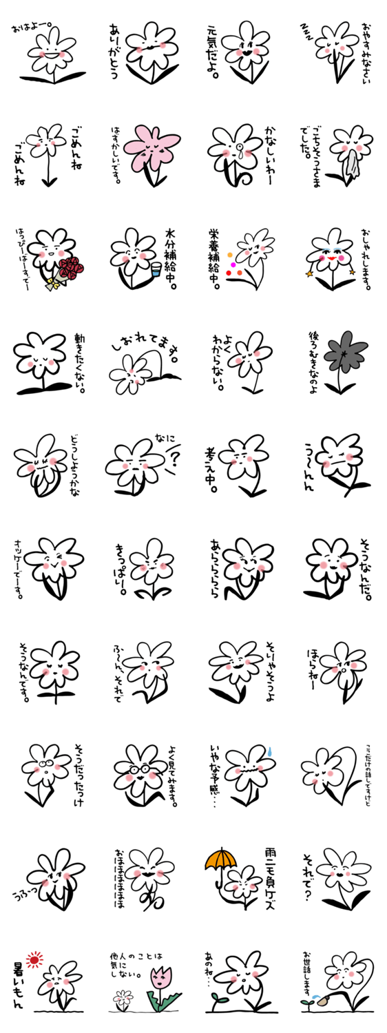 Miss 花子さん Rose コメントをどうぞ 道ばたでひっそり咲く花子さんのスタンプ。ほっこりゆるゆるの会話にお使いください。 このスタンプどう思う?!↓クリックで投票♪好き (0)かわいい (0)かっこいい (0)おもしろい (0)使いやすそう (0)欲しい (0)萌え (0)ほっこりする (0)おしゃれ (0)ゆるい (0)こわい (0)ウザい (0)キモい (0)ムカつく (0)持ってる (0)癒される (0)セクシー (0)個性的 (0)私は買わない (0)誰かプレゼントして! (0) 購入・プレゼントする Facebookでシェア Twitterでシェア