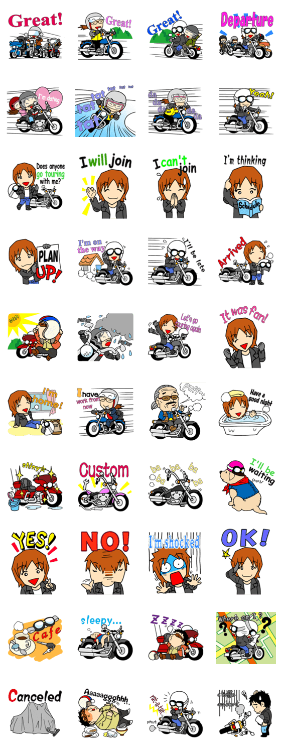 Motorcycle touring (E) vol.01 umesan コメントをどうぞ This is a LINE stamp for motorcycle touring. I am happy if this is used for riders' usual motorcycle life and touring. (English version) このスタンプどう思う?!↓クリックで投票♪好き (0)かわいい (0)かっこいい (0)おもしろい (0)使いやすそう (0)欲しい (0)萌え (0)ほっこりする (0)おしゃれ (0)ゆるい (0)こわい (0)ウザい (0)キモい (0)ムカつく (0)持ってる (0)癒される (0)セクシー (0)個性的 (0)私は買わない (0)誰かプレゼントして! (0) 購入・プレゼントする Facebookでシェア Twitterでシェア