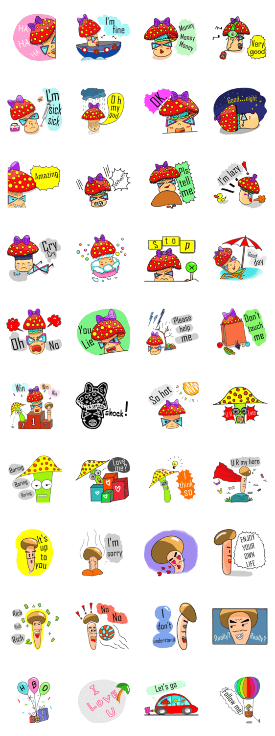 Mushroom and friends (English Version) Lemonpig コメントをどうぞ Mushroom sticker and friends. So cute, colorful , freshy mushrooms with friends and good message. このスタンプどう思う?!↓クリックで投票♪好き (0)かわいい (0)かっこいい (0)おもしろい (0)使いやすそう (0)欲しい (0)萌え (0)ほっこりする (0)おしゃれ (0)ゆるい (0)こわい (0)ウザい (0)キモい (0)ムカつく (0)持ってる (0)癒される (0)セクシー (0)個性的 (0)私は買わない (0)誰かプレゼントして! (0) 購入・プレゼントする Facebookでシェア Twitterでシェア
