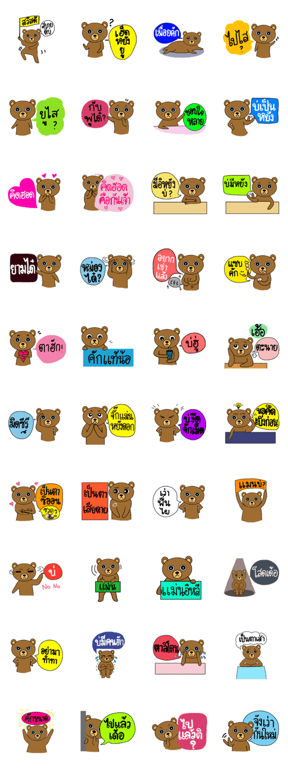 My popular kuma bear -ISAAN Thai dialect Ben Feisthauer コメントをどうぞ My popular kuma bear comes in ISAAN language. (ISAAN is a northeastern dialect of Thailand) このスタンプどう思う?!↓クリックで投票♪好き (0)かわいい (0)かっこいい (0)おもしろい (0)使いやすそう (0)欲しい (0)萌え (0)ほっこりする (0)おしゃれ (0)ゆるい (0)こわい (0)ウザい (0)キモい (0)ムカつく (0)持ってる (0)癒される (0)セクシー (0)個性的 (0)私は買わない (0)誰かプレゼントして! (0) 購入・プレゼントする Facebookでシェア Twitterでシェア