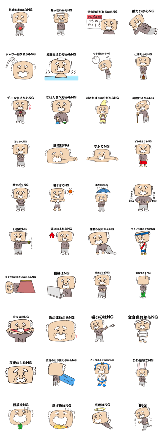N爺(えぬじぃ) リリ コメントをどうぞ ゆるかわなおじいちゃんは、何に対しても"NG"しか言わない『N爺』だった!N爺が魅せるNGに気を悪くする人はいないはず。断るのが苦手なあなたもN爺スタンプで断り上手に。 このスタンプどう思う?!↓クリックで投票♪好き (0)かわいい (0)かっこいい (0)おもしろい (0)使いやすそう (0)欲しい (0)萌え (0)ほっこりする (0)おしゃれ (0)ゆるい (0)こわい (0)ウザい (0)キモい (0)ムカつく (0)持ってる (0)癒される (0)セクシー (0)個性的 (0)私は買わない (0)誰かプレゼントして! (0) 購入・プレゼントする Facebookでシェア Twitterでシェア