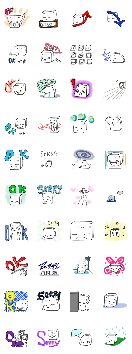 OK豆腐・SORRY豆腐 あいんちゅ コメントをどうぞ 色んな場面で使えるOKとSORRY中心のスタンプです。 このスタンプどう思う?!↓クリックで投票♪好き (0)かわいい (0)かっこいい (0)おもしろい (0)使いやすそう (0)欲しい (0)萌え (0)ほっこりする (0)おしゃれ (0)ゆるい (0)こわい (0)ウザい (0)キモい (0)ムカつく (0)持ってる (0)癒される (0)セクシー (0)個性的 (0)私は買わない (0)誰かプレゼントして! (0) 購入・プレゼントする Facebookでシェア Twitterでシェア