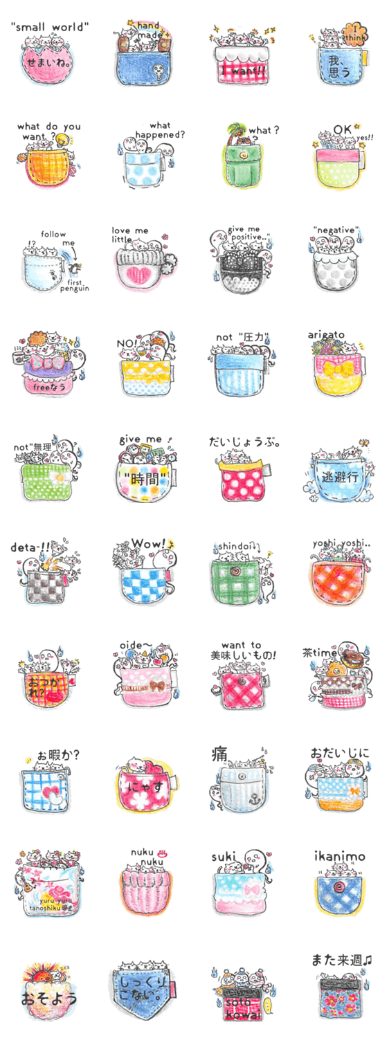 pocket of life chumit コメントをどうぞ 小さな世界に生きる、小さな小さな彼らです。 どうか あちこちいっぱい連れて行って‥ あなたの広い世界を、たくさん見せてあげて! このスタンプどう思う?!↓クリックで投票♪好き (0)かわいい (0)かっこいい (0)おもしろい (0)使いやすそう (0)欲しい (0)萌え (0)ほっこりする (0)おしゃれ (0)ゆるい (0)こわい (0)ウザい (0)キモい (0)ムカつく (0)持ってる (0)癒される (0)セクシー (0)個性的 (0)私は買わない (0)誰かプレゼントして! (0) 購入・プレゼントする Facebookでシェア Twitterでシェア