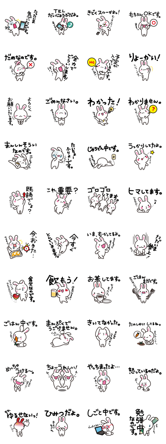 RURUのゆきうさ~返信&状況お知らせスタンプ RURU コメントをどうぞ 真っ白なウサギ、「ゆきうさちゃん」シリーズ第2弾です。ゆきうさちゃんが、返信をお手伝い。ゆるい感じで、かわいく、今の状況を伝えてくれます! このスタンプどう思う?!↓クリックで投票♪好き (0)かわいい (0)かっこいい (0)おもしろい (0)使いやすそう (0)欲しい (0)萌え (0)ほっこりする (0)おしゃれ (0)ゆるい (0)こわい (0)ウザい (0)キモい (0)ムカつく (0)持ってる (0)癒される (0)セクシー (0)個性的 (0)私は買わない (0)誰かプレゼントして! (0) 購入・プレゼントする Facebookでシェア Twitterでシェア
