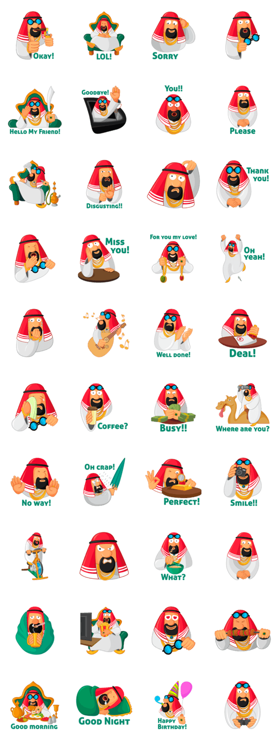 Sheikh Sultan: Welcome to the Royal Life Perdix コメントをどうぞ Sheikh Sultan enjoys living large and he is always looking to have a good time. You'd love to join him in all of the fun! このスタンプどう思う?!↓クリックで投票♪好き (0)かわいい (0)かっこいい (0)おもしろい (0)使いやすそう (0)欲しい (0)萌え (0)ほっこりする (0)おしゃれ (0)ゆるい (0)こわい (0)ウザい (0)キモい (0)ムカつく (0)持ってる (0)癒される (0)セクシー (0)個性的 (0)私は買わない (0)誰かプレゼントして! (0) 購入・プレゼントする Facebookでシェア Twitterでシェア