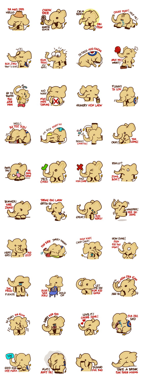 Siam Elephant snoopy21 コメントをどうぞ If you love Thailand or are interested in Thai language, "Siam Elephant" can be your best friend in chatroom. He loves to make friends with foreigners. このスタンプどう思う?!↓クリックで投票♪好き (0)かわいい (0)かっこいい (0)おもしろい (0)使いやすそう (0)欲しい (0)萌え (0)ほっこりする (0)おしゃれ (0)ゆるい (0)こわい (0)ウザい (0)キモい (0)ムカつく (0)持ってる (0)癒される (0)セクシー (0)個性的 (0)私は買わない (0)誰かプレゼントして! (0) 購入・プレゼントする Facebookでシェア Twitterでシェア