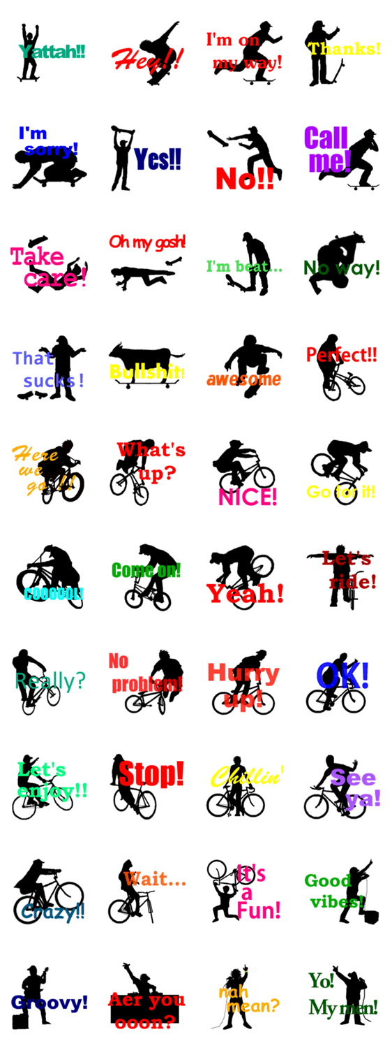 Street style streetman コメントをどうぞ ストリート系(スケボー・BMX・FIXED・MUSIC)を影絵にしました。一言入っているので、ストリート系が好きな方是非使ってください! このスタンプどう思う?!↓クリックで投票♪好き (0)かわいい (0)かっこいい (0)おもしろい (0)使いやすそう (0)欲しい (0)萌え (0)ほっこりする (0)おしゃれ (0)ゆるい (0)こわい (0)ウザい (0)キモい (0)ムカつく (0)持ってる (0)癒される (0)セクシー (0)個性的 (0)私は買わない (0)誰かプレゼントして! (0) 購入・プレゼントする Facebookでシェア Twitterでシェア