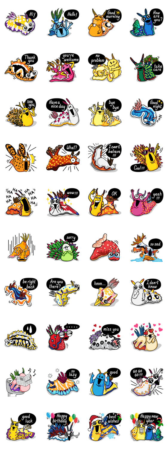 Suba Gang – Nudibranch lovers PixelMon コメントをどうぞ We're tiny, pretty and colourful. Divers call us sea slug or nudibranch. You'll find us under the sea and ocean. We're ready for dancing on your chat. Let's go! このスタンプどう思う?!↓クリックで投票♪好き (0)かわいい (0)かっこいい (0)おもしろい (0)使いやすそう (0)欲しい (0)萌え (0)ほっこりする (0)おしゃれ (0)ゆるい (0)こわい (0)ウザい (0)キモい (0)ムカつく (0)持ってる (0)癒される (0)セクシー (0)個性的 (0)私は買わない (0)誰かプレゼントして! (0) 購入・プレゼントする Facebookでシェア Twitterでシェア