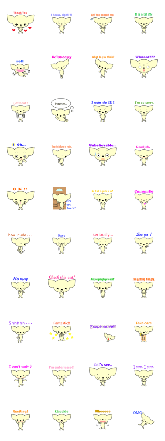 Talking Chihuahua Mika コメントをどうぞ Paco the talking chihuahua このスタンプどう思う?!↓クリックで投票♪好き (0)かわいい (0)かっこいい (0)おもしろい (0)使いやすそう (0)欲しい (0)萌え (0)ほっこりする (0)おしゃれ (0)ゆるい (0)こわい (0)ウザい (0)キモい (0)ムカつく (0)持ってる (0)癒される (0)セクシー (0)個性的 (0)私は買わない (0)誰かプレゼントして! (0) 購入・プレゼントする Facebookでシェア Twitterでシェア