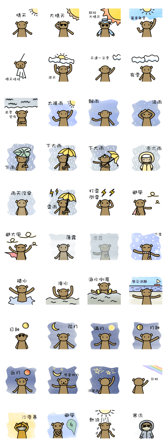 Teddy's weather report Teddy Hsu コメントをどうぞ Teddy in different kinds of weather condition. このスタンプどう思う?!↓クリックで投票♪好き (0)かわいい (0)かっこいい (0)おもしろい (0)使いやすそう (0)欲しい (0)萌え (0)ほっこりする (0)おしゃれ (0)ゆるい (0)こわい (0)ウザい (0)キモい (0)ムカつく (0)持ってる (0)癒される (0)セクシー (0)個性的 (0)私は買わない (0)誰かプレゼントして! (0) 購入・プレゼントする Facebookでシェア Twitterでシェア