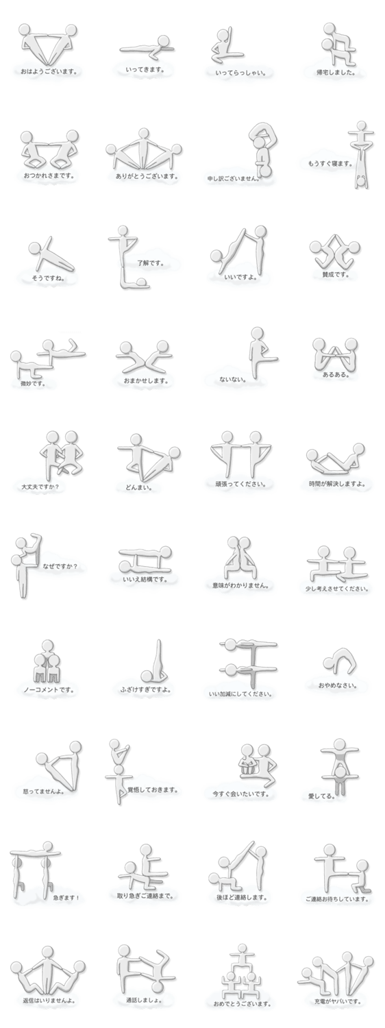 THEシュール!半透明人間の組体操 ver.1 ルル コメントをどうぞ 背景画面が透けて見える、すけすけの半透明人間。身体の美が織り成す言葉とふきだし風の爽やかな雲が、シンプルに、そしてクールにシュールな世界を追及します! このスタンプどう思う?!↓クリックで投票♪好き (0)かわいい (0)かっこいい (0)おもしろい (3)使いやすそう (0)欲しい (0)萌え (0)ほっこりする (0)おしゃれ (0)ゆるい (0)こわい (0)ウザい (0)キモい (0)ムカつく (0)持ってる (0)癒される (0)セクシー (0)個性的 (0)私は買わない (0)誰かプレゼントして! (0) 購入・プレゼントする Facebookでシェア Twitterでシェア