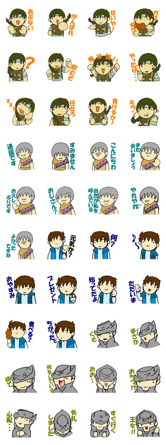 TheEarth.2 Yumi コメントをどうぞ オリジナルキャラクターのガル・ソル・ダイ・イーグル。ガル・陽気で強気なおじさん。ソル・クールな策略家。ダイ・温厚なリクの兄。イーグル・王国親衛隊隊長 このスタンプどう思う?!↓クリックで投票♪好き (0)かわいい (0)かっこいい (0)おもしろい (0)使いやすそう (0)欲しい (0)萌え (0)ほっこりする (0)おしゃれ (0)ゆるい (0)こわい (0)ウザい (0)キモい (0)ムカつく (0)持ってる (0)癒される (0)セクシー (0)個性的 (0)私は買わない (0)誰かプレゼントして! (0) 購入・プレゼントする Facebookでシェア Twitterでシェア