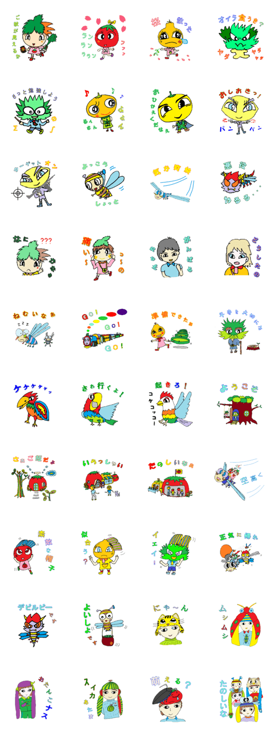 Tona Deko Letu in the vegetable world Nobi-wan Kenobi (Nobuyuki Oiwa) コメントをどうぞ There are stickers of the vegetable world. Tona is a girl like tomato. Deko is a girl like orange. Letu is a boy like lettuce. There are lots other characters. このスタンプどう思う?!↓クリックで投票♪好き (0)かわいい (0)かっこいい (0)おもしろい (0)使いやすそう (0)欲しい (0)萌え (0)ほっこりする (0)おしゃれ (0)ゆるい (0)こわい (0)ウザい (0)キモい (0)ムカつく (0)持ってる (0)癒される (0)セクシー (0)個性的 (0)私は買わない (0)誰かプレゼントして! (0) 購入・プレゼントする Facebookでシェア Twitterでシェア