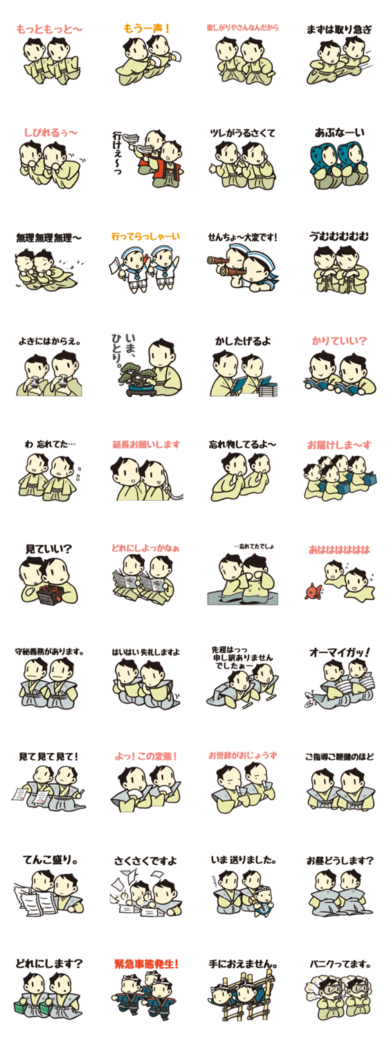 TWINS 2 桂さん コメントをどうぞ 若様ダブル、全身バージョン。 裃できりり?たまにコスプレ。気持ちが二倍の時にどうぞ。 背景に色があると、吹き出しが現れます。 このスタンプどう思う?!↓クリックで投票♪好き (0)かわいい (0)かっこいい (0)おもしろい (0)使いやすそう (0)欲しい (0)萌え (0)ほっこりする (0)おしゃれ (0)ゆるい (0)こわい (0)ウザい (0)キモい (0)ムカつく (0)持ってる (0)癒される (0)セクシー (0)個性的 (0)私は買わない (0)誰かプレゼントして! (0) 購入・プレゼントする Facebookでシェア Twitterでシェア