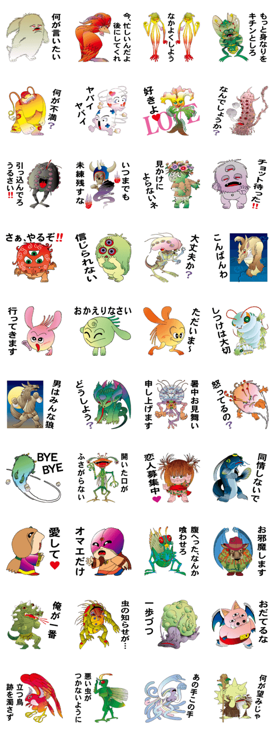 UMAキャラクターズ C ぶな爺 コメントをどうぞ 沖縄のぶな爺が制作したUMA(未確認生物)キャラクターのラインスタンプ このスタンプどう思う?!↓クリックで投票♪好き (0)かわいい (0)かっこいい (0)おもしろい (0)使いやすそう (0)欲しい (0)萌え (0)ほっこりする (0)おしゃれ (0)ゆるい (0)こわい (0)ウザい (0)キモい (0)ムカつく (0)持ってる (0)癒される (0)セクシー (0)個性的 (0)私は買わない (0)誰かプレゼントして! (0) 購入・プレゼントする Facebookでシェア Twitterでシェア