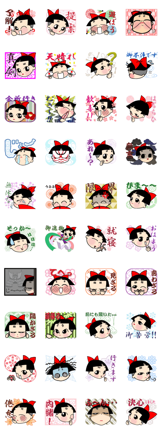 Wagara-okappa-syoujyo 柊くうく コメントをどうぞ And Japanese pattern, a long time ago in Japan, many seen was of "OkappaAtama" girl.Maro-style eyebrows and Kariage-style hair also is "Kawaii". このスタンプどう思う?!↓クリックで投票♪好き (0)かわいい (0)かっこいい (0)おもしろい (0)使いやすそう (0)欲しい (0)萌え (0)ほっこりする (0)おしゃれ (0)ゆるい (0)こわい (0)ウザい (0)キモい (0)ムカつく (0)持ってる (0)癒される (0)セクシー (0)個性的 (0)私は買わない (0)誰かプレゼントして! (0) 購入・プレゼントする Facebookでシェア Twitterでシェア