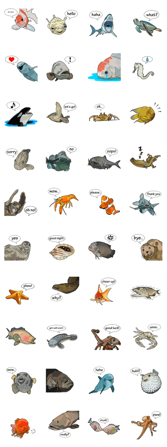 Water Animals Unnote コメントをどうぞ These marine animals gather together to generate your joy and happiness! With the fascinating design from their behaviors, let them make your day an amazing one このスタンプどう思う?!↓クリックで投票♪好き (0)かわいい (0)かっこいい (0)おもしろい (0)使いやすそう (0)欲しい (0)萌え (0)ほっこりする (0)おしゃれ (0)ゆるい (0)こわい (0)ウザい (0)キモい (0)ムカつく (0)持ってる (0)癒される (0)セクシー (0)個性的 (0)私は買わない (0)誰かプレゼントして! (0) 購入・プレゼントする Facebookでシェア Twitterでシェア