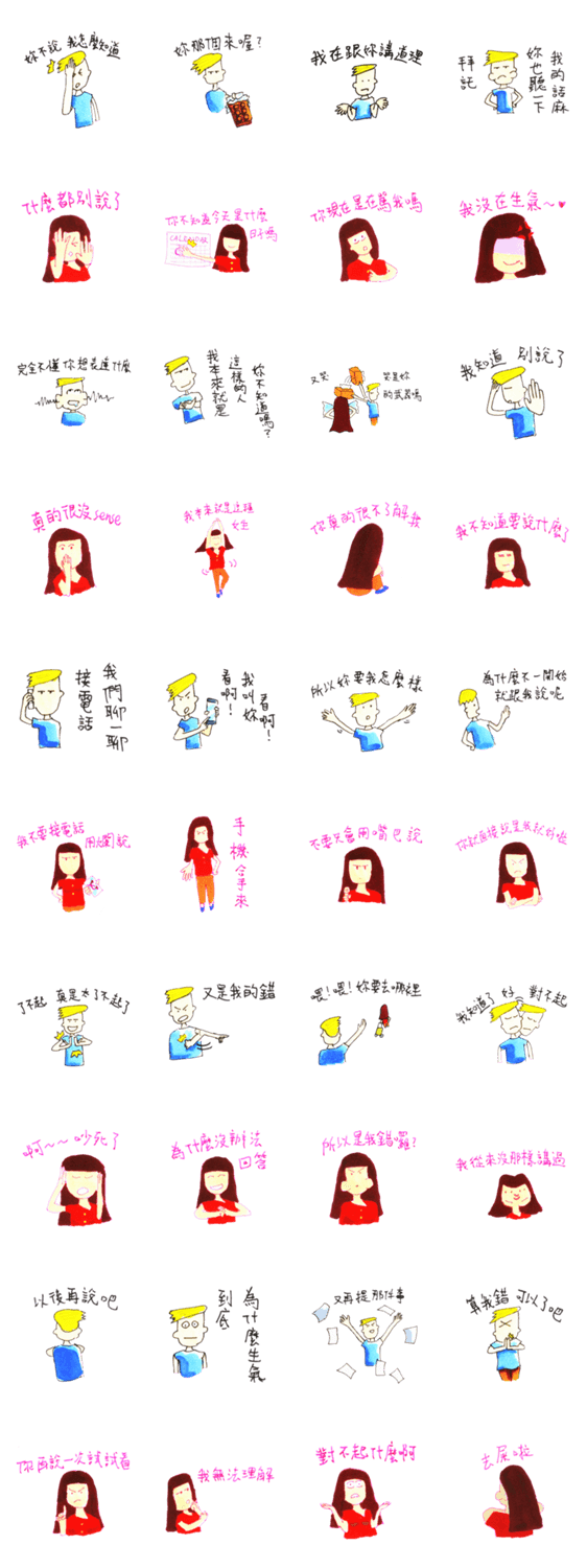 wrangle lovers(Chinese Traditional) douasin コメントをどうぞ boy and girl's wrangle.With Chinese Traditional.This sticker can help you wrangle quicker than typing. After wrangling don't forget a sorry. このスタンプどう思う?!↓クリックで投票♪好き (0)かわいい (0)かっこいい (0)おもしろい (0)使いやすそう (0)欲しい (0)萌え (0)ほっこりする (0)おしゃれ (0)ゆるい (0)こわい (0)ウザい (0)キモい (0)ムカつく (0)持ってる (0)癒される (0)セクシー (0)個性的 (0)私は買わない (0)誰かプレゼントして! (0) 購入・プレゼントする Facebookでシェア Twitterでシェア