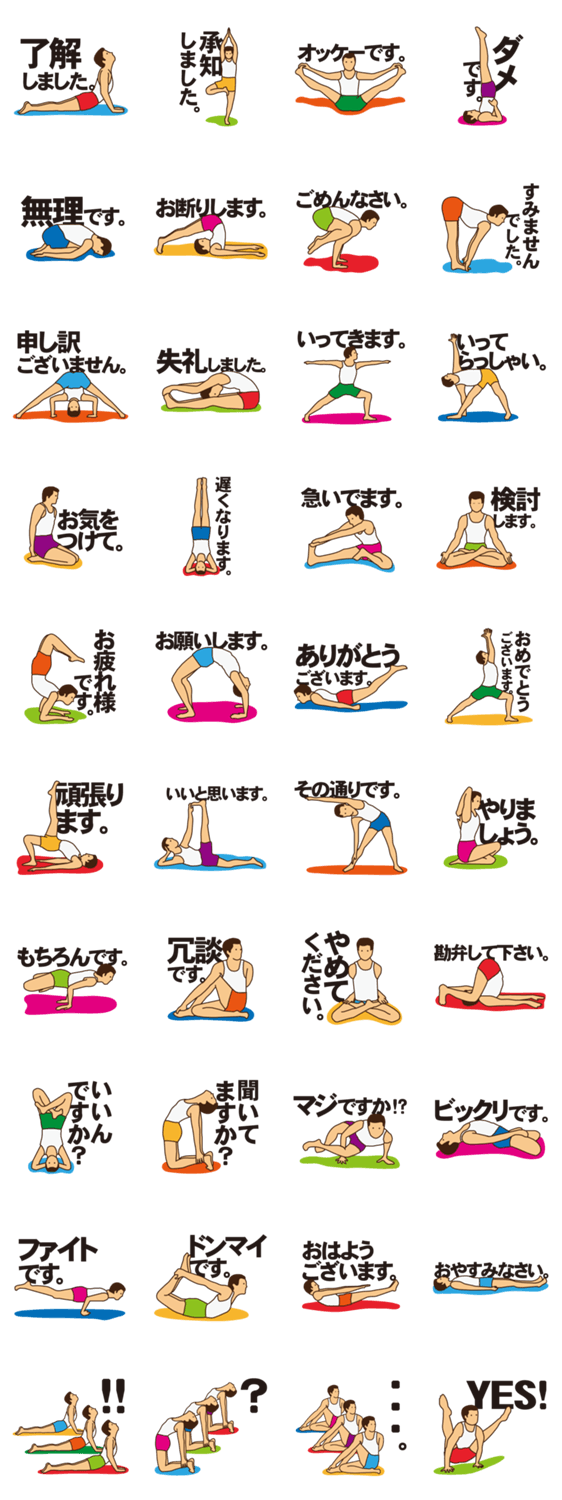 YOGAです。 pantaku コメントをどうぞ YOGA(ヨガ)のポーズと敬語のミスマッチさがなんとも言えない、様々なシーンで使えるちょっぴりふざけたスタンプです。 このスタンプどう思う?!↓クリックで投票♪好き (0)かわいい (0)かっこいい (0)おもしろい (0)使いやすそう (0)欲しい (0)萌え (0)ほっこりする (0)おしゃれ (0)ゆるい (0)こわい (0)ウザい (0)キモい (0)ムカつく (0)持ってる (0)癒される (0)セクシー (0)個性的 (0)私は買わない (0)誰かプレゼントして! (0) 購入・プレゼントする Facebookでシェア Twitterでシェア
