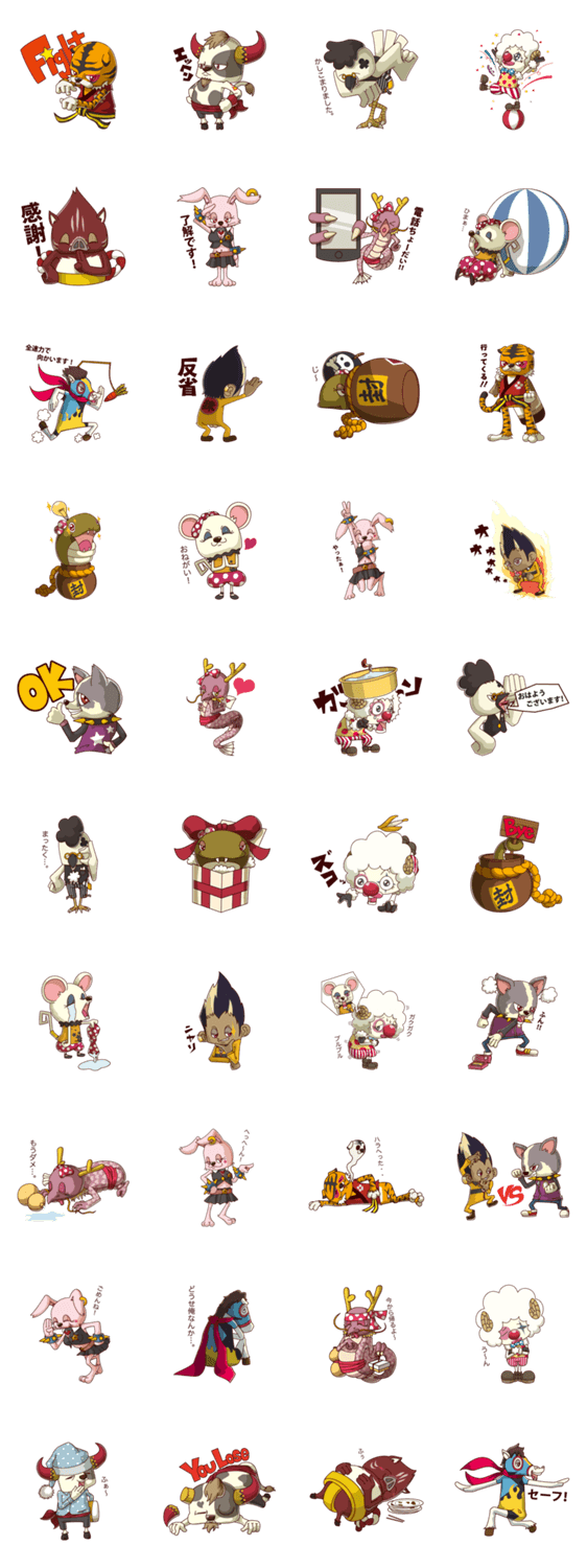 Zodiac Fighter ma-bo☆ コメントをどうぞ かつて1年間の王座をめぐり競った十二支の子孫達が繰り広げる戦い「エトリートファイト」を描いたZodiac Fighterのキャラクターです。かわいい動物達をぜひ使って下さい! このスタンプどう思う?!↓クリックで投票♪好き (0)かわいい (0)かっこいい (0)おもしろい (0)使いやすそう (0)欲しい (0)萌え (0)ほっこりする (0)おしゃれ (0)ゆるい (0)こわい (0)ウザい (0)キモい (0)ムカつく (0)持ってる (0)癒される (0)セクシー (0)個性的 (0)私は買わない (0)誰かプレゼントして! (0) 購入・プレゼントする Facebookでシェア Twitterでシェア